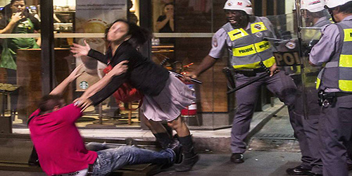 Na noite de 13 as grandes redes de TV transmitiram com quase todos os detalhes a violência da polícia contra a galera na rua. Do descompasso entre imagem e discurso nasceu revolta, humor, muitos vídeos. Não são os vinte centavos. Não é mais só pelo direito de protestar. A nossa lista é muito comprida. Tem a ver com respeitar passeatas pró- Estatuto do Nascituro (entre outras).