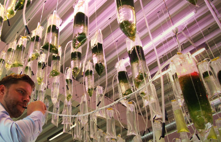 Para a maioria das pessoas, alga é aquele negócio verde que aparece no mar ou no aquário. E frequentemente é associada com o adjetivo “nojento”. Aí que a Associação Arquitetônica da Escola de Arquitetura de Londres está com uma exposição bacana e hightech, chamada Hortus (horta em latim também é jardim, mas neste caso é: Hydro Organisms Responsive to Urban Stimuli – organismos aquáticos sensíveis a estímulos urbanos, em tradução rápida).