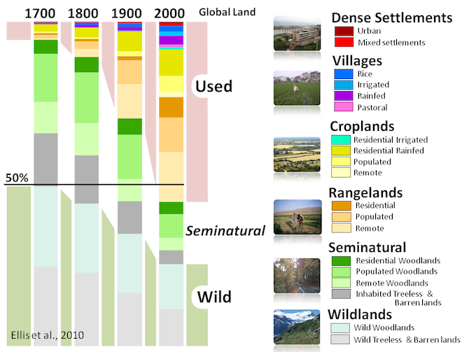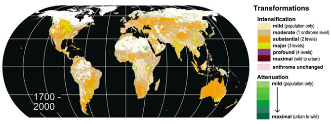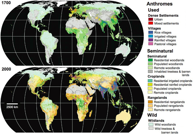 Há dois anos atrás, os ecologistas Erle Ellis e Navim Ramankutty, da Universidade de Maryland, lançaram um mapa dos biomas no mundo. Estes mapas sempre estiveram nos atlas e paredes das salas de aula, mas o deles é fundamentalmente diferente: eles atualizaram a definição de bioma para refletir como os seres humanos usam a terra. Ou Terra, para ser mais exata.